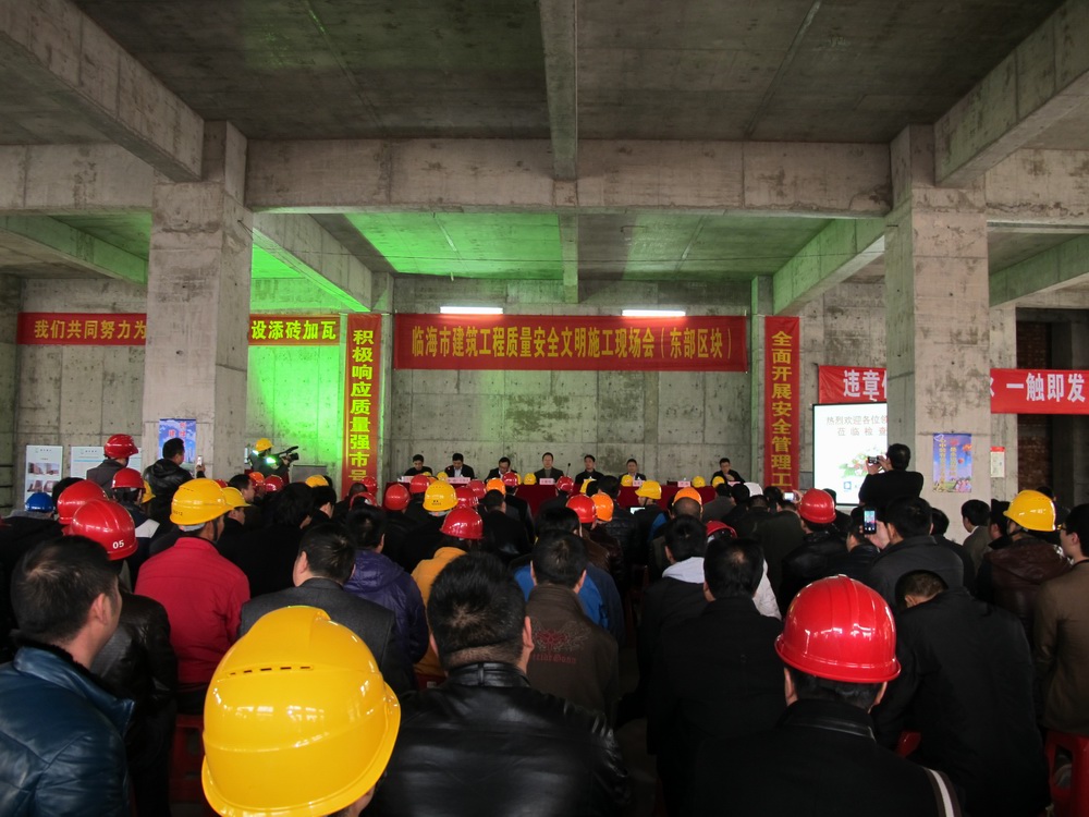 市住房和城鄉(xiāng)規(guī)劃局副局長、黨委副書記王黎明同志就召開此次現(xiàn)場會(huì)的目的和要求發(fā)表重要講話,他指出近年來頭門港區(qū)和杜橋鎮(zhèn)投入建設(shè)的工程項(xiàng)目不斷增多,目前全市在建的166個(gè)工程項(xiàng)目中,東部區(qū)塊多達(dá)67個(gè),其中不少是高、大、難的項(xiàng)目,雖然東部區(qū)塊建筑市場發(fā)展形勢喜人,但建筑施工安全管理水平和建筑工程質(zhì)量水平仍有待提高。近三年全市獲省標(biāo)化項(xiàng)目為13個(gè),東部區(qū)塊僅為1個(gè),在質(zhì)量評杯方面東部區(qū)塊的工程仍是空白。在杜橋召開此次觀摩會(huì),目的在于加強(qiáng)東部區(qū)塊各建設(shè)項(xiàng)目之間的相互交流,取長補(bǔ)短,全面提升東部區(qū)塊建設(shè)工程管理水平,力爭安全文化有創(chuàng)新,施工安全上水平,工程質(zhì)量出精品。對各施工企業(yè)、監(jiān)理單位提出了三點(diǎn)要求:一是抓工程質(zhì)量,筑精品工程。把好材料質(zhì)量關(guān),施工組織設(shè)計(jì)關(guān),現(xiàn)場施工檢驗(yàn)關(guān),質(zhì)量通病防治關(guān),積極推廣新技術(shù)、新材料、新工藝,提高建筑工程質(zhì)量和效益,努力打造“綠色建筑”和精品工程。二是抓安全管理,保施工平安。深入開展隱患排查工作,扭轉(zhuǎn)東部區(qū)塊建筑工地安全生產(chǎn)形勢嚴(yán)峻的局面,強(qiáng)化安全生產(chǎn)責(zé)任的落實(shí),提取安全生產(chǎn)經(jīng)費(fèi),??顚S?;強(qiáng)化全員安全意識,大力宣傳法律法規(guī);強(qiáng)化安全生產(chǎn)措施落實(shí),加強(qiáng)施工現(xiàn)場監(jiān)管,做到安全檢查常態(tài)化、現(xiàn)場監(jiān)管遠(yuǎn)程化、危險(xiǎn)源控制程序化、場地建設(shè)標(biāo)準(zhǔn)化。三是抓文明建設(shè),創(chuàng)和諧環(huán)境。抓好工地現(xiàn)場布置,抓好辦公用房和民工學(xué)校的建設(shè),抓好員工培訓(xùn),抓好民工工資發(fā)放管理等。最后王局要求各單位利用東部新城建設(shè)的大好機(jī)遇,加強(qiáng)項(xiàng)目間交流,取長補(bǔ)短,統(tǒng)一思想,形成共識,建一流品牌,創(chuàng)精品工程,全面提升我市建設(shè)工程管理水平,力爭安全文化有創(chuàng)新,施工安全上水平,工程質(zhì)量出精品。